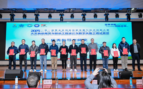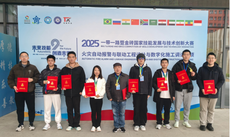 11月23日,2025一带一路暨金砖国家技能发展与技术创新大赛“火灾自动报警与联动工程设计与数字化施工调试”赛项全国总决赛在贵阳圆满落幕。在建筑设备学院电气专业张瑶瑶、苏山、刘悦、乔晓刚老师指导下,由林贤杰、周篡、胡孙齐和倪俊哲、叶童鑫、张宵绮组成的两支参赛队奋勇拼搏,在全国63支队伍中脱颖而出,总排名位列全国总决赛第二和第七,最终斩获一等奖(金牌)和二等奖(银牌)的优异成绩!建筑设备学院指导教师张瑶瑶、苏山、刘悦、乔晓刚均获评“优秀指导教师”,学校更荣获“优秀组织奖”和“最佳组织奖”,尽显办学实力与育人成效。